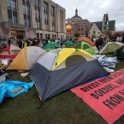 The encampment left behind a trail of crude vandalism, including the defacement of fountains, spray-painted walkways, tampering with fire safety systems, destruction of campus furniture, stripping electrical equipment for wire, and the wrecking of parked vehicles.